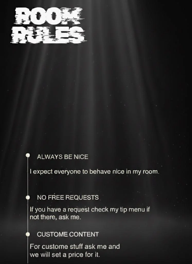 Røyking, Massasje, Onani, Flexing, Kyssing, Kukkvurdering, CEI, Onaneringsinstruksjon, Skittensnakk, Blotting, Cum Play, Facial, Rollespill, Cosplay, Facesitting, Twerk, SPH, Ydmykelse, Fotfetish, Spanking